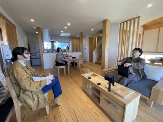 みやこの家で、青木スタッフ・岡田スタッフ・丸山スタッフと一緒に撮影です(*^^*)