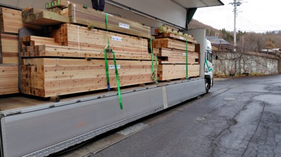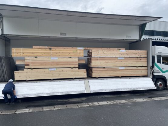 この後、プレカット工場に運ばれ、ほぞや継手などが加工された後、現場に運ばれて大工さんが家の形にしていきます。