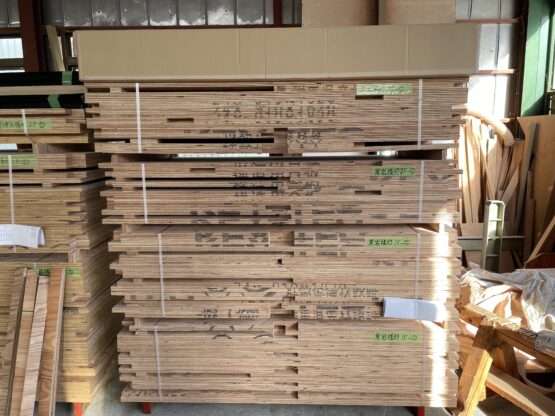 第一工場では床材の浮造り加工、床合板の加工、下地材の加工、羽柄材の出荷です。