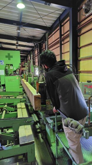 本社工場では、躯体の製材に出荷作業、家具材の加工です。
