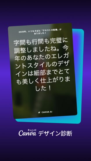 Canvaの「デザイン診断」を使って、2025年のデザイン活動を振り返ってみました。軽い気持ちでチェックしてみたのですが、思った以上に細かく分析されていて、画面を見ながら「あ、今年はこういう方向だったんだ」と改めて整理できる内容でした。