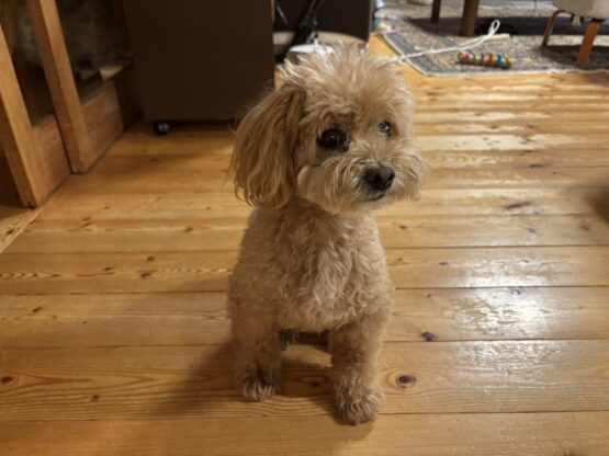 トイプードルの女の子で9月20日で9才になりました。 高校2年生になった孫が名付け親です。