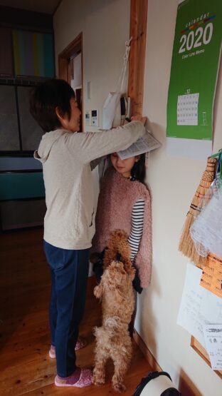 6年前に孫10才の身長を柱に印をつけていると