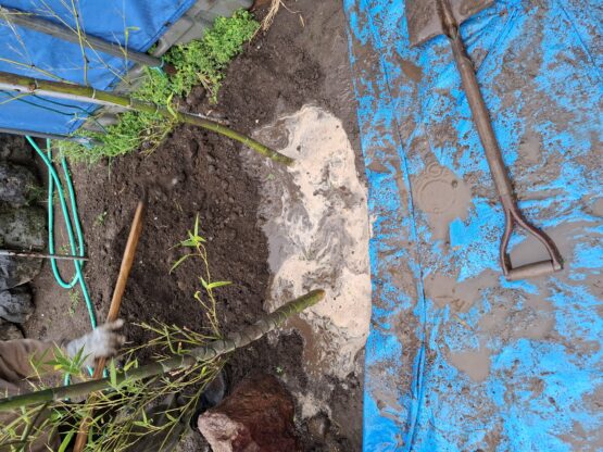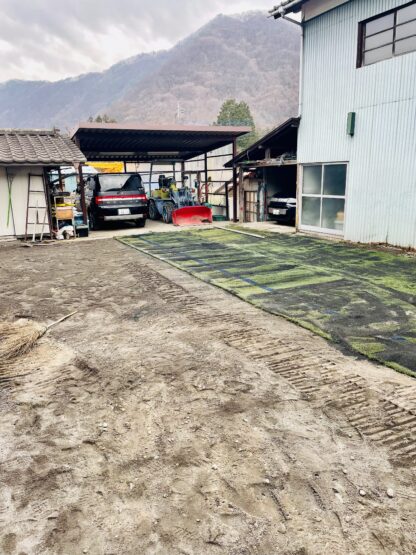 私は天然芝が好きで自宅に35㎡の高麗芝がありますが、先日サッカー場で使用していた、中古の人工芝が手に入ったので、実家の庭に施行してきました。