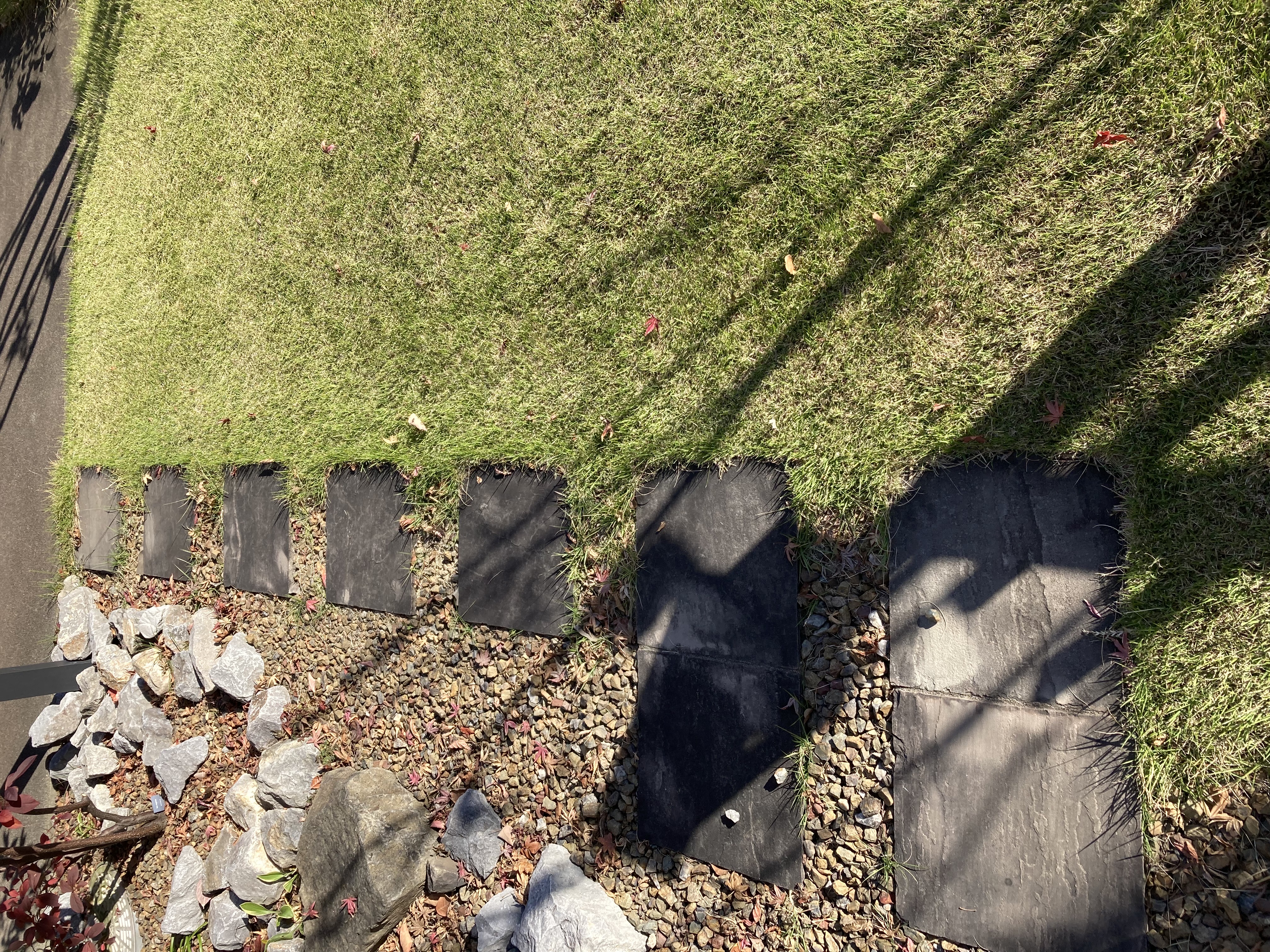 踏み石に芝が侵食して境目がだらしなくなってきているところに