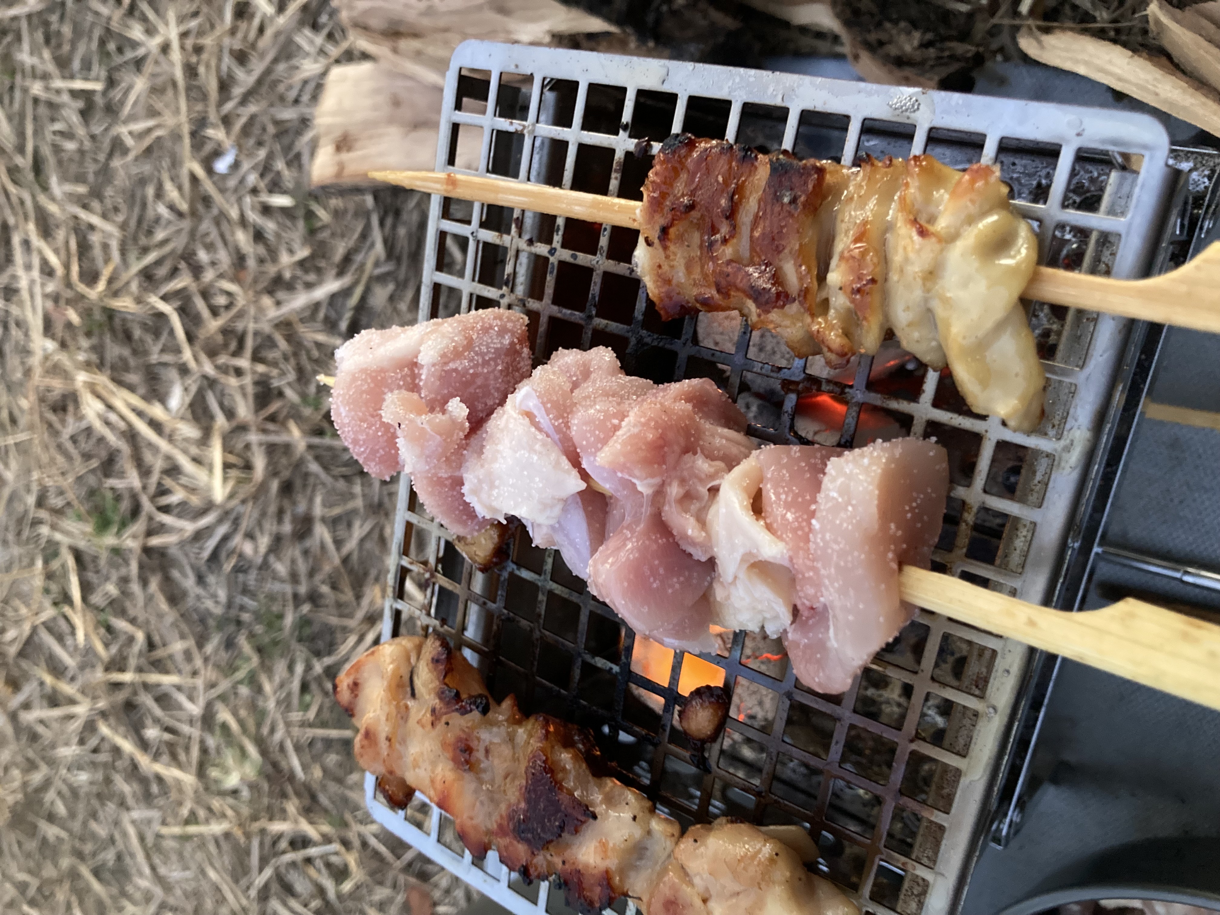 このあとの鍋用鶏もも肉を串打ちした自作焼き鳥が優勝でした。