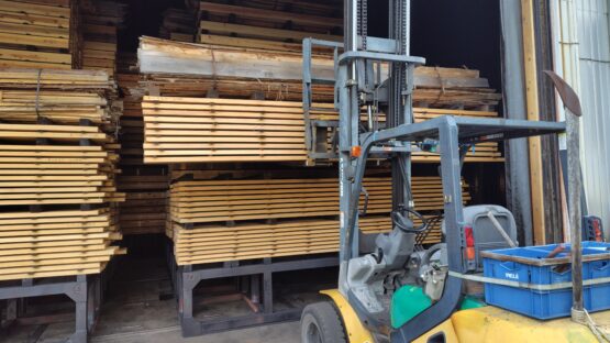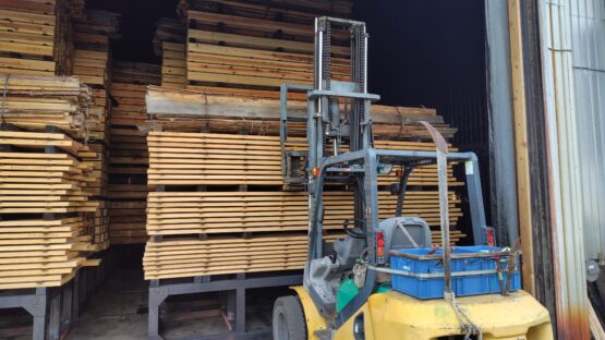 丸太を燻煙乾燥してから皮を剥くと、きれいな濃茶色の磨き丸太が出来るという、独自の製品です。