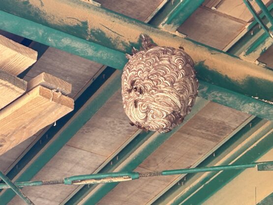 スズメバチはとても攻撃性があります。重篤なアレルギー症状(アナフィラキシーショック)による死亡例が毎年あるため、お気を付けください。