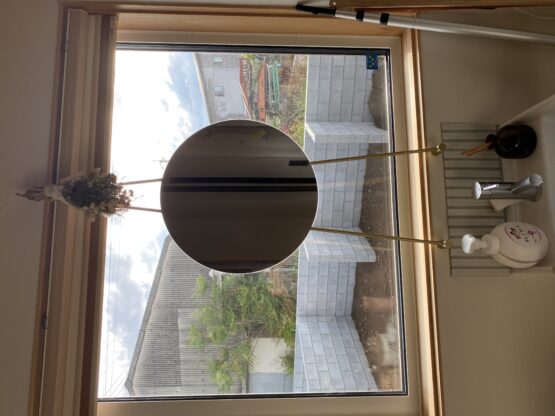 窓前にミラーを付けるのは少し勇気がいりましたが、昼間は自然光に四周から照らされるので、顔が良く見え女性のメイク用にはおススメです!