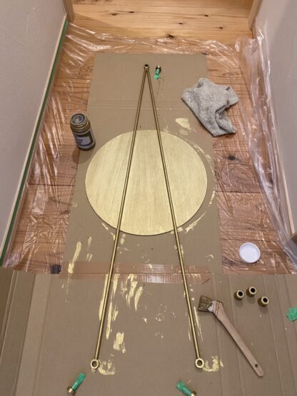 ブラケット照明の真鍮色と合わせた真鍮塗料もなかなか良い感じに仕上がりました。