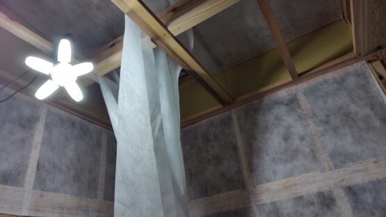 この後、壁や天井の中にセルロースファイバーを吹き込んで行きます。