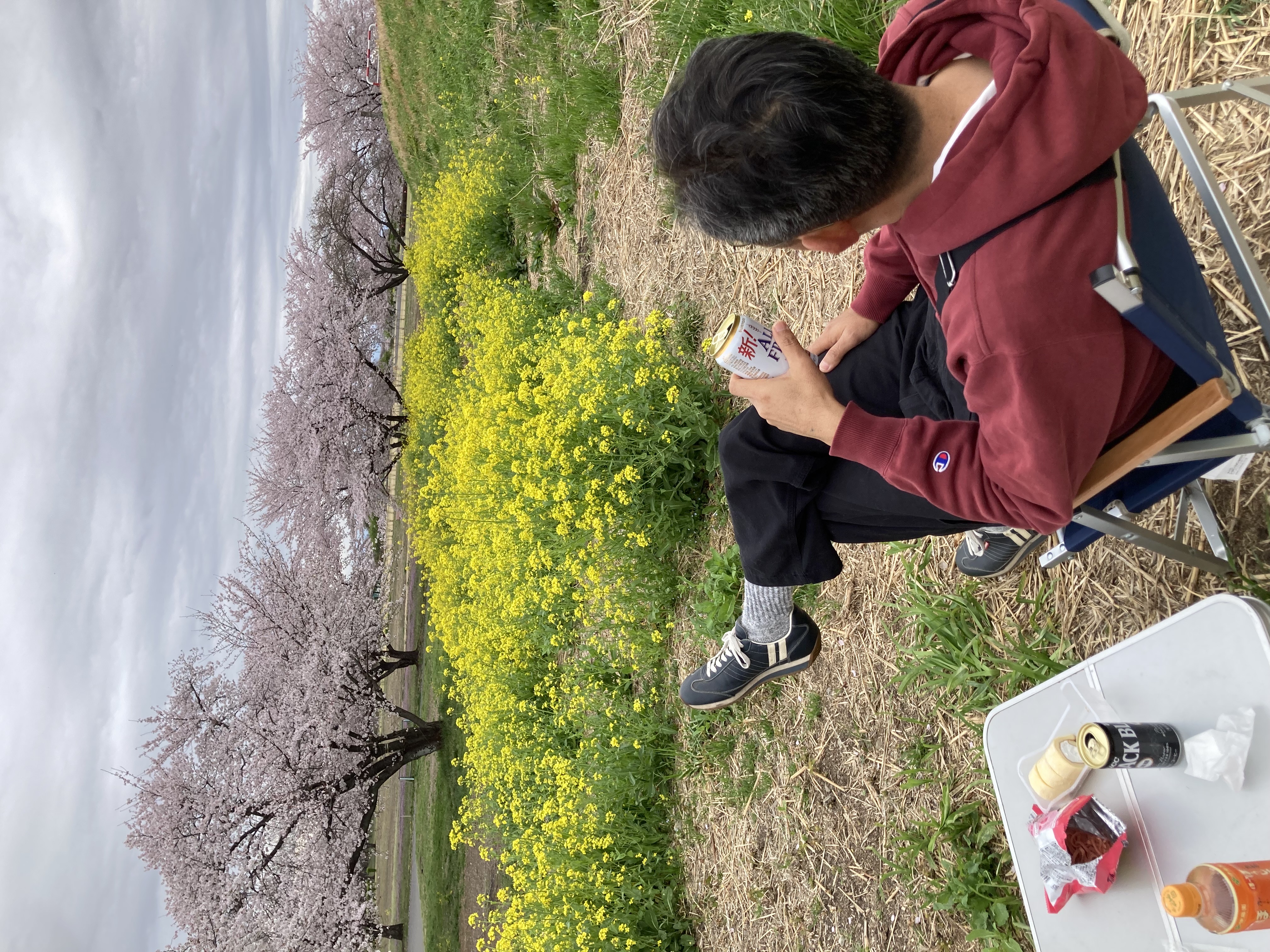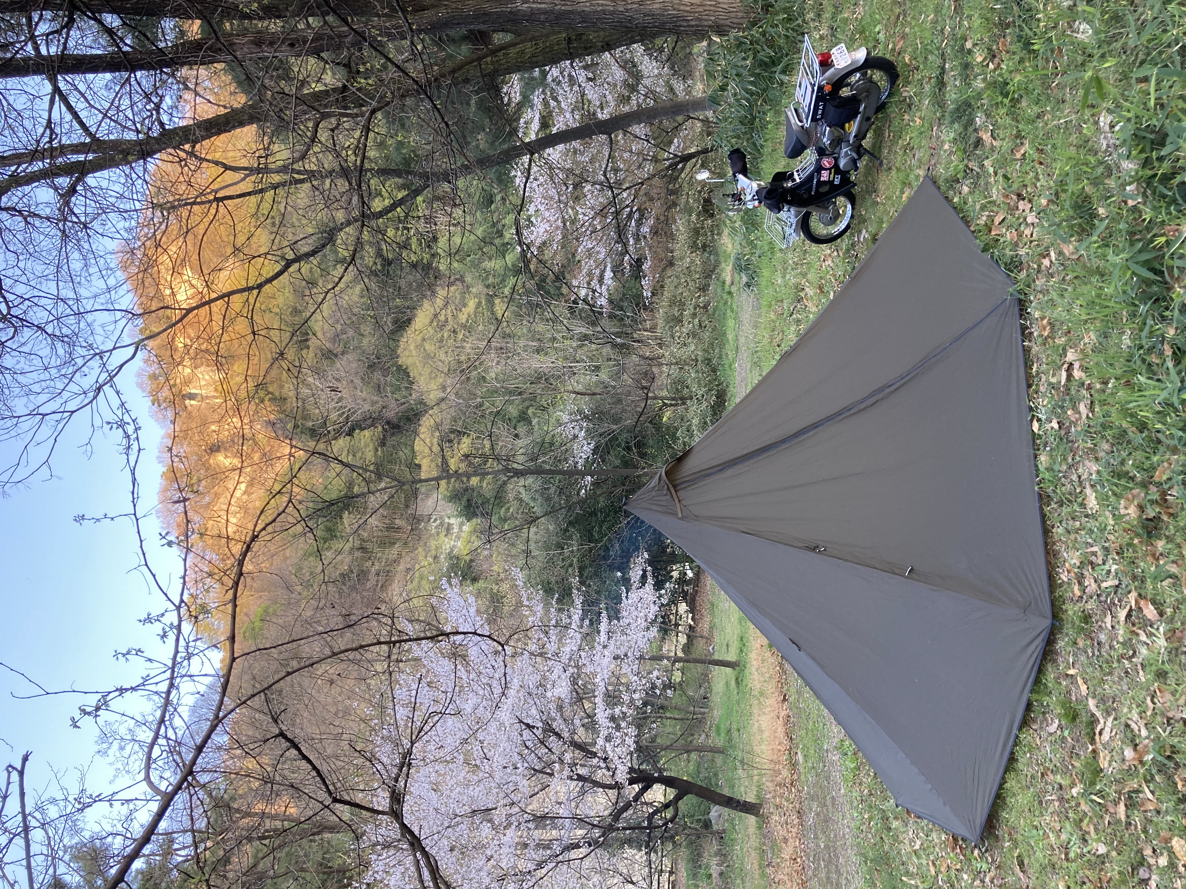 散り際でしたが、見知らぬネコとお花見キャンプを楽しめました。