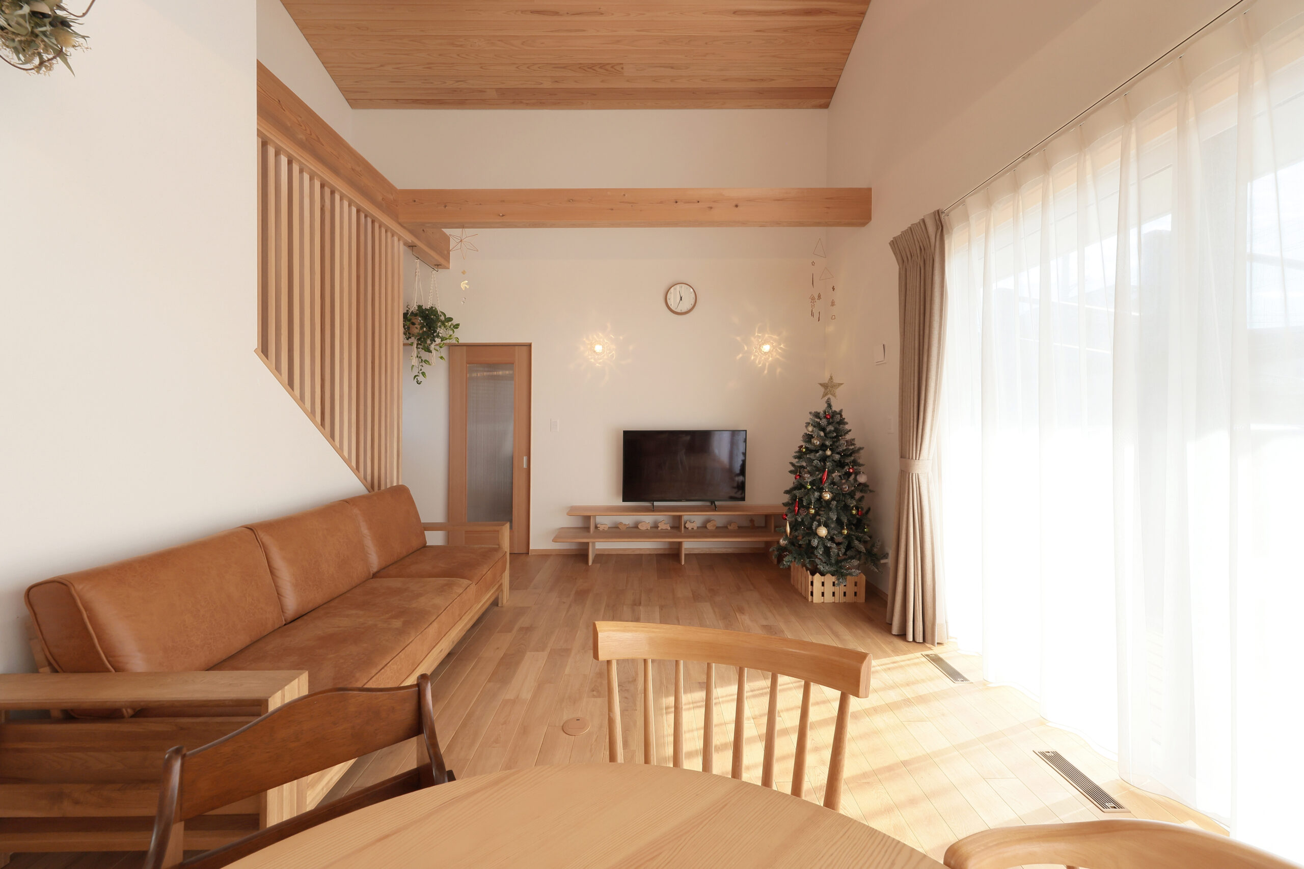 大きな吹抜けとLDKの2連窓により明るく開放的な空間となっています。