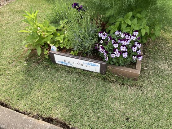 庭で極少量のハーブ、カモミール、レモンバービナー、ステビアを