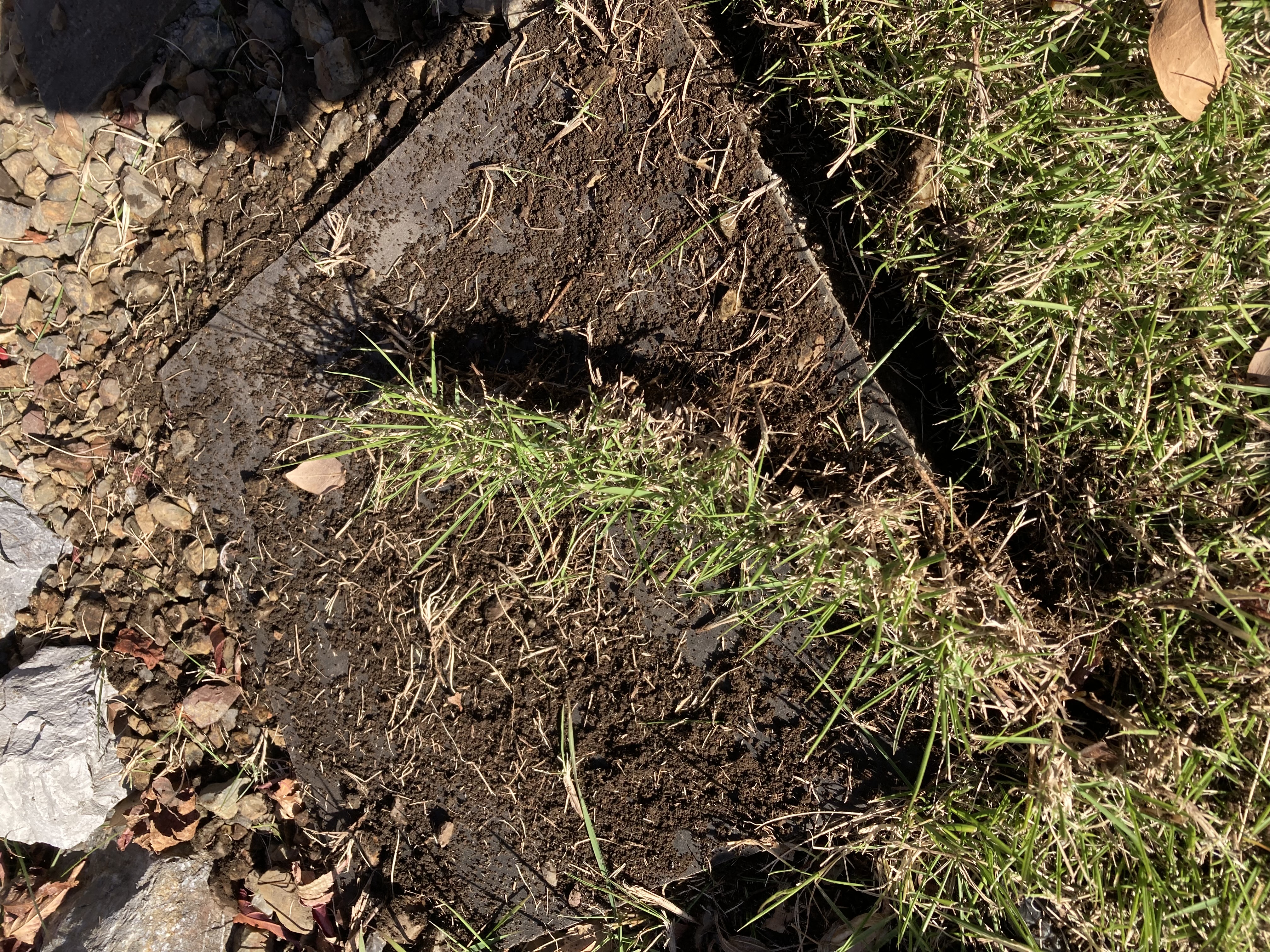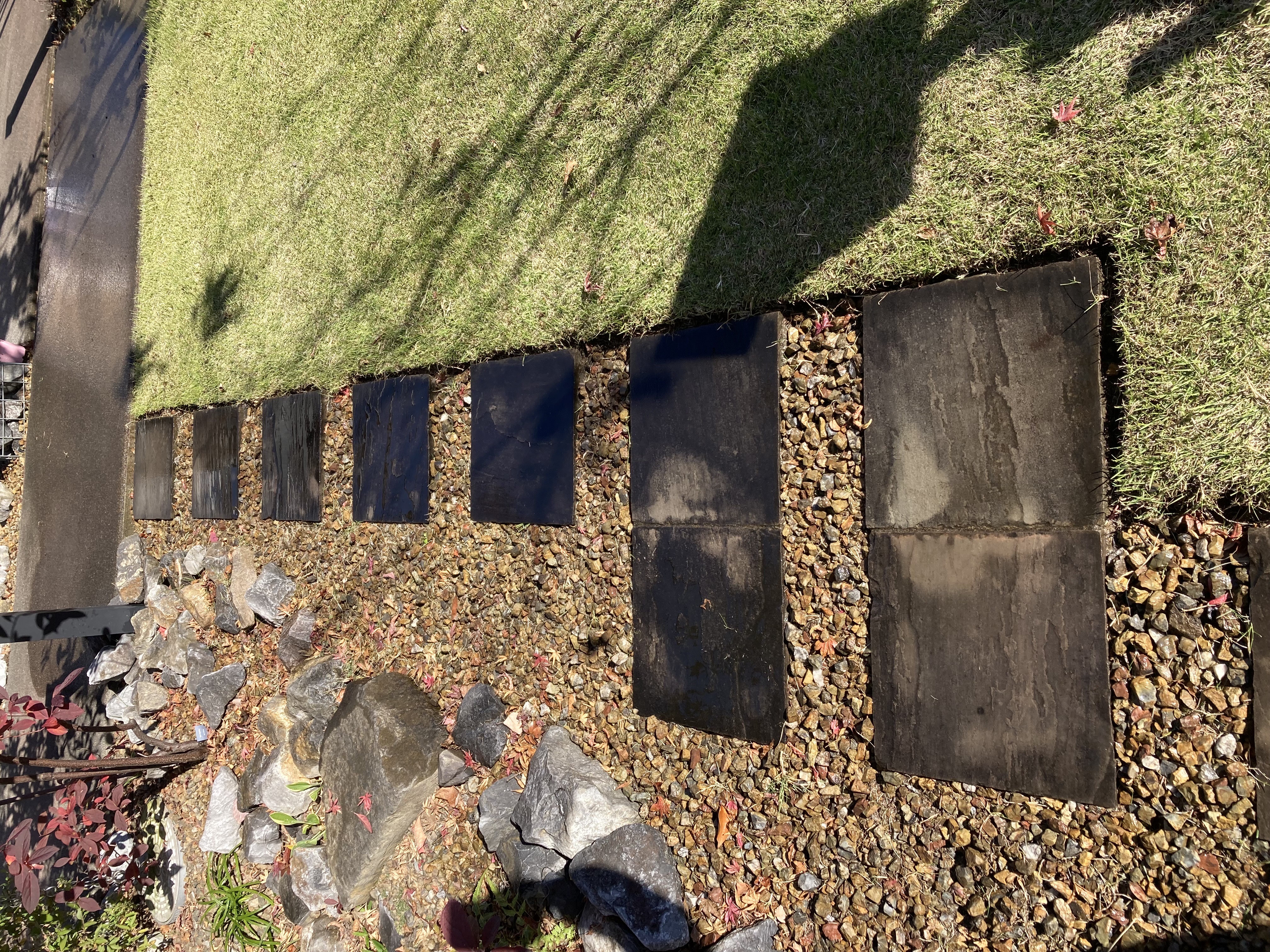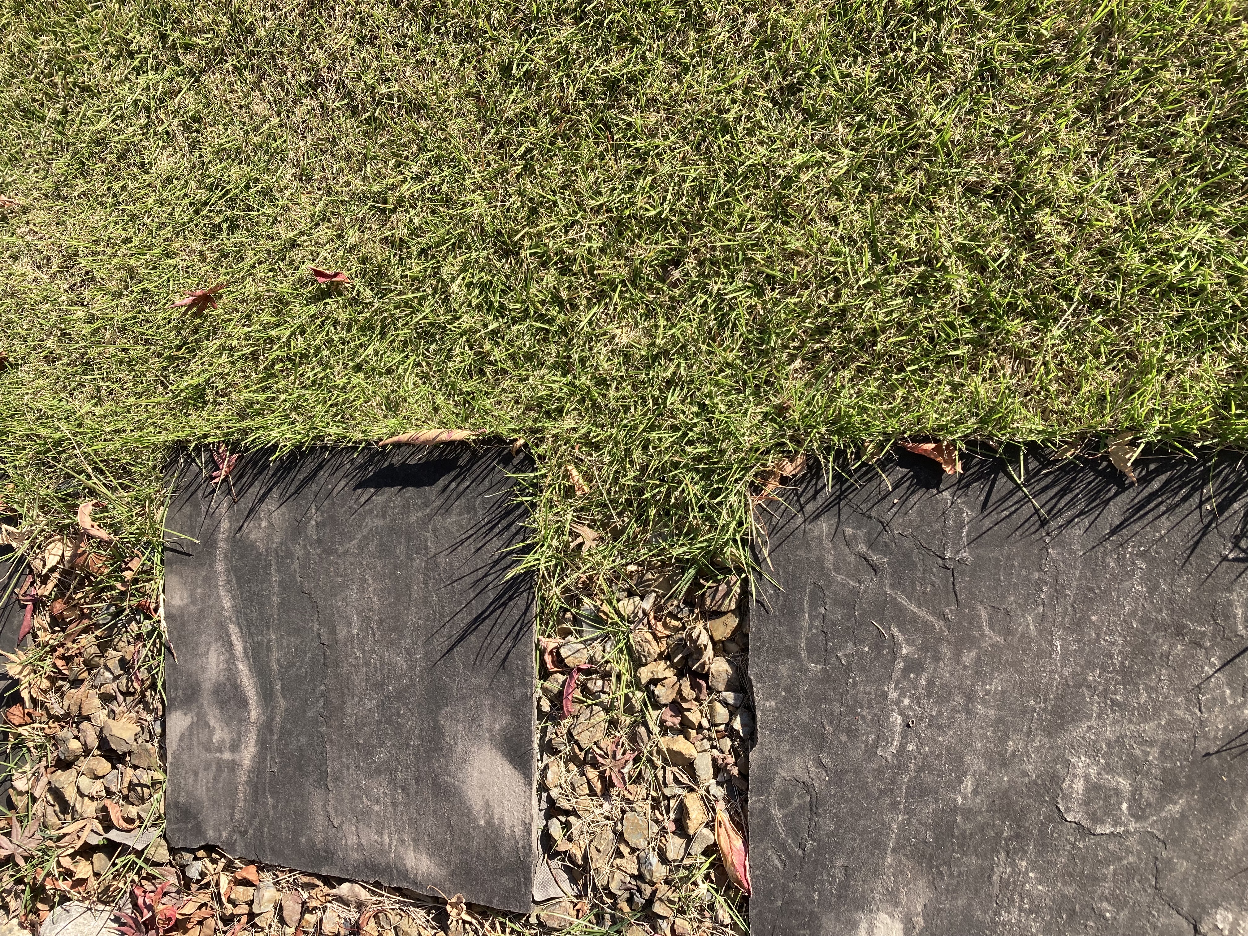 踏み石に芝が侵食して境目がだらしなくなってきているところに