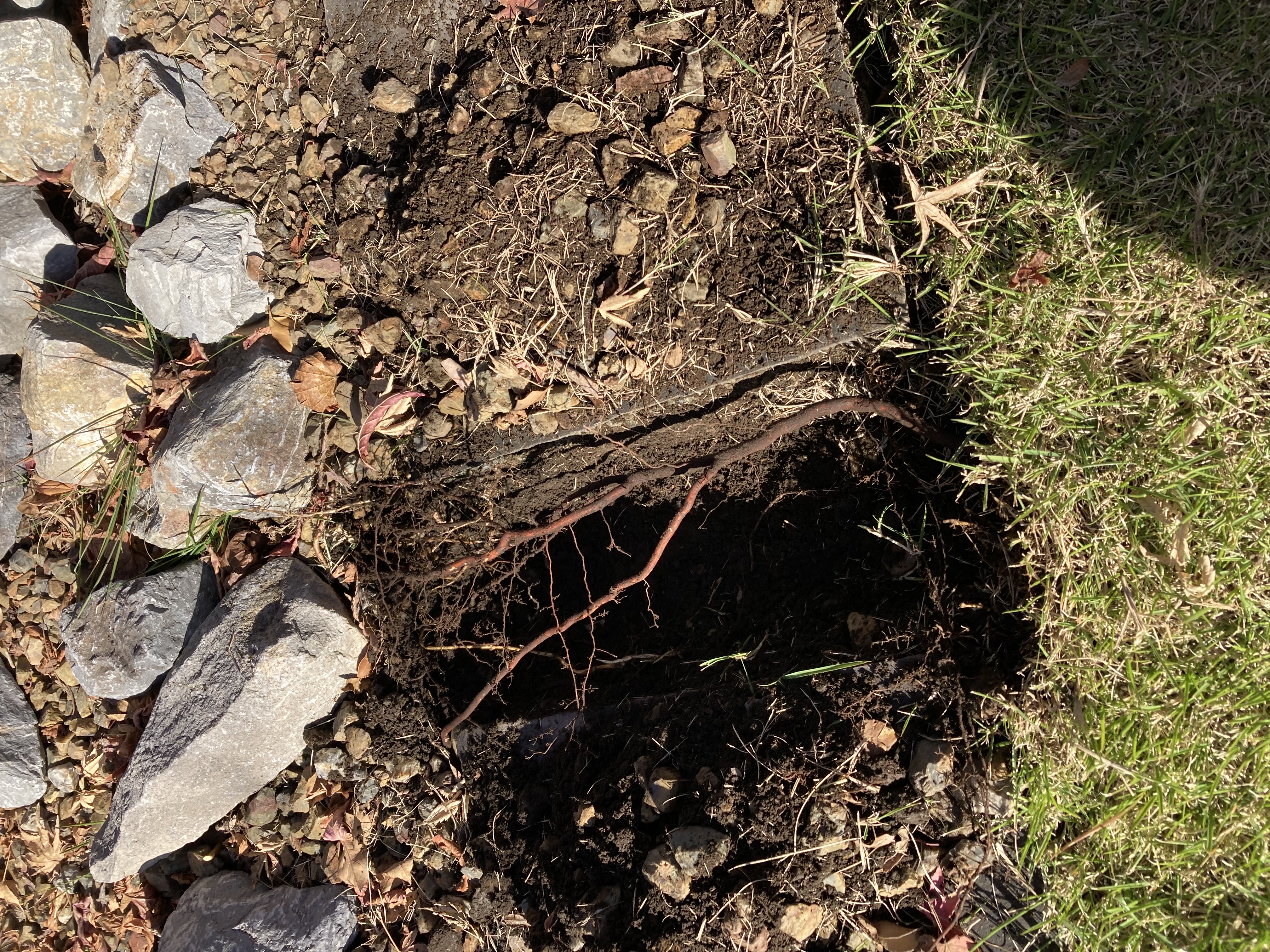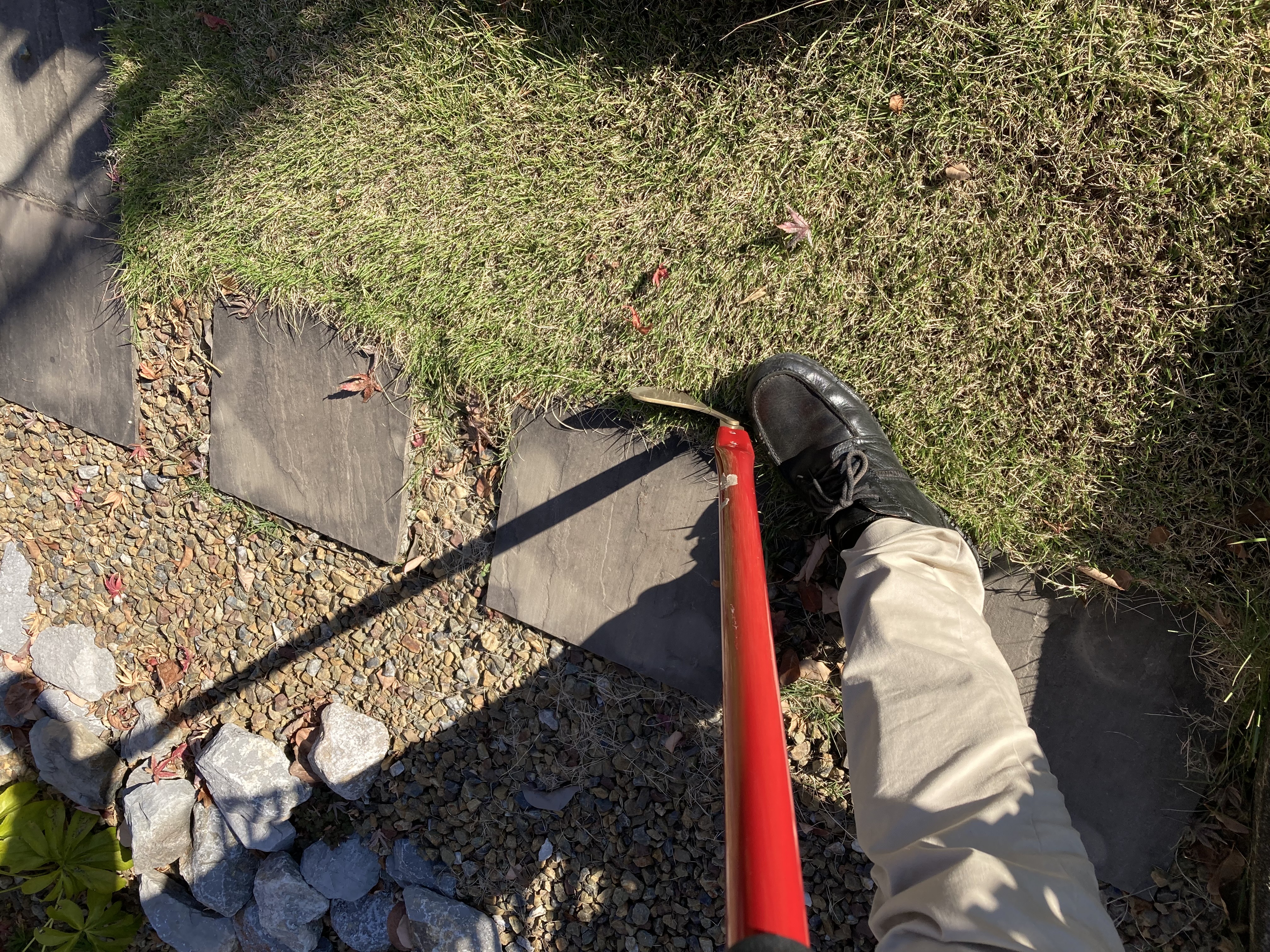 砂利をどかし防草シートの上の芝も、下の根も取り除きます。