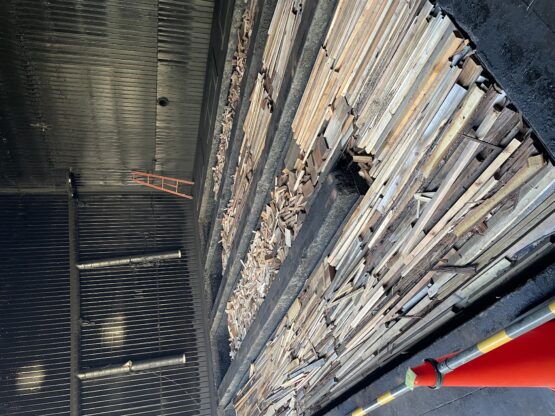 そこに燻煙乾燥炉の燃料(丸太を製材した時にでる端の部分や各工場、各現場から出る木くずやおが屑など)を大型トラック約1台分投入します。