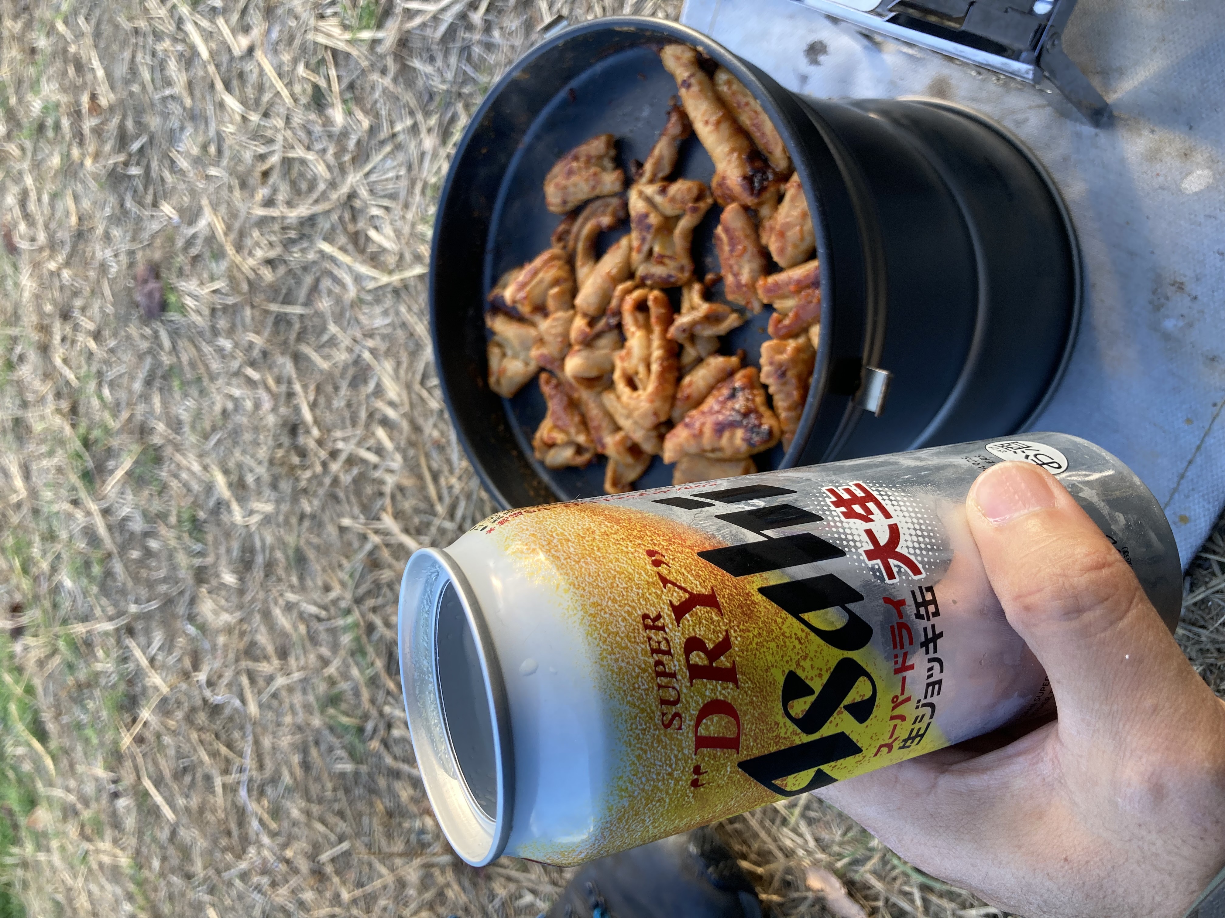 このあとの鍋用鶏もも肉を串打ちした自作焼き鳥が優勝でした。