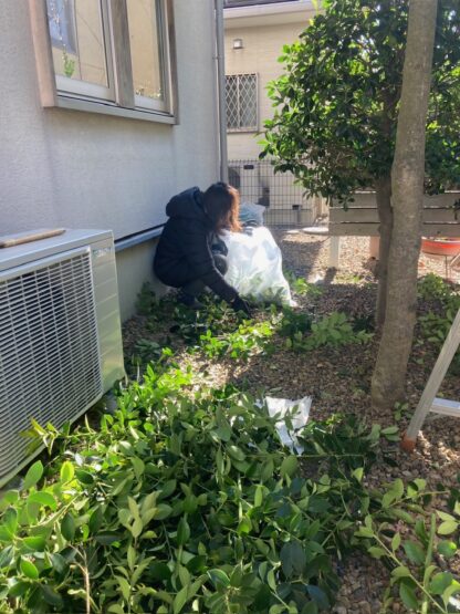 展示場の伸び放題の木を中村スタッフがお正月前に剪定してくれました