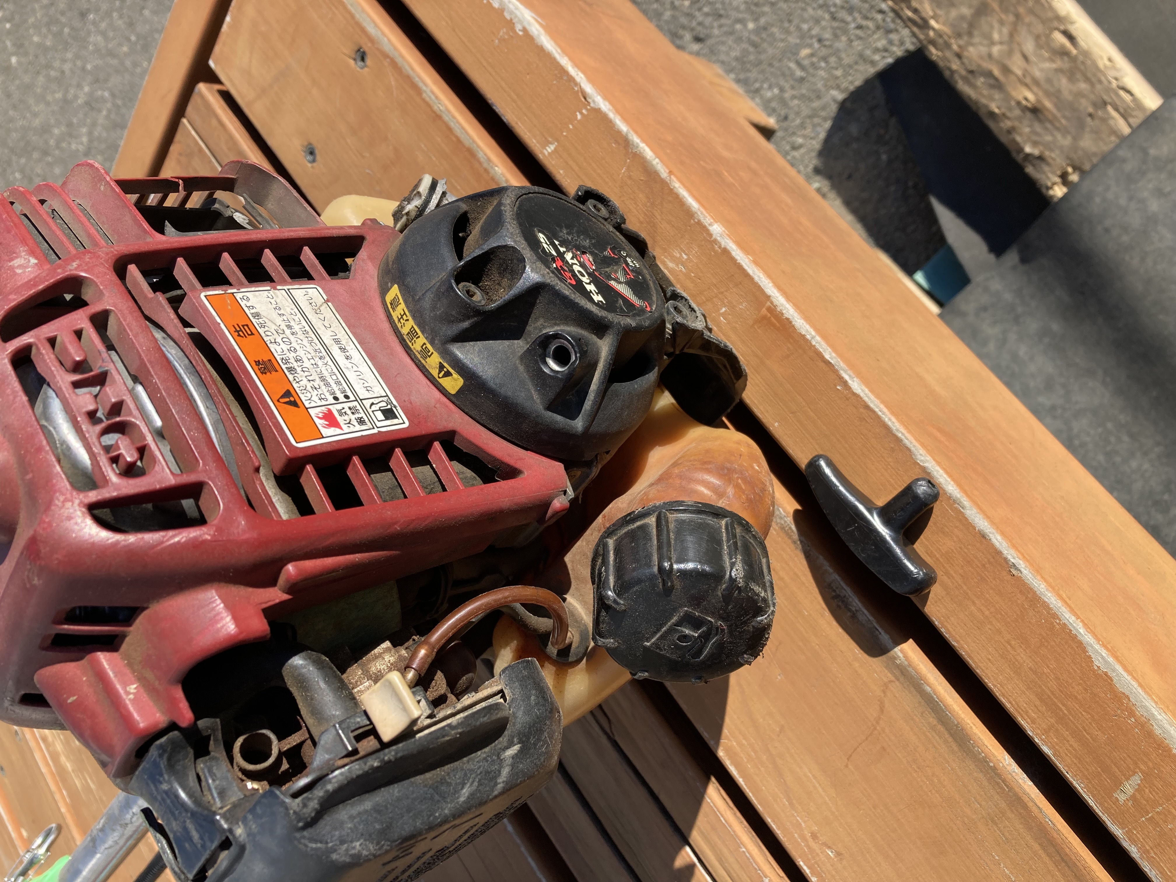 紐が切れて本来あるはずのエンジン始動時に引っ張るアレがついてません。