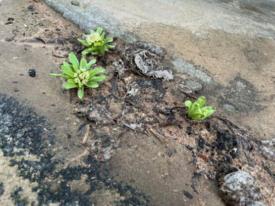 ふと気づいたら、工場内のコンクリートとアスファルトの隙間から