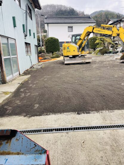 グランドで使用していた人工芝なので分厚く、2m×10mのロール状になっていて、人の手ではびくともしないので重機を使用しました。
