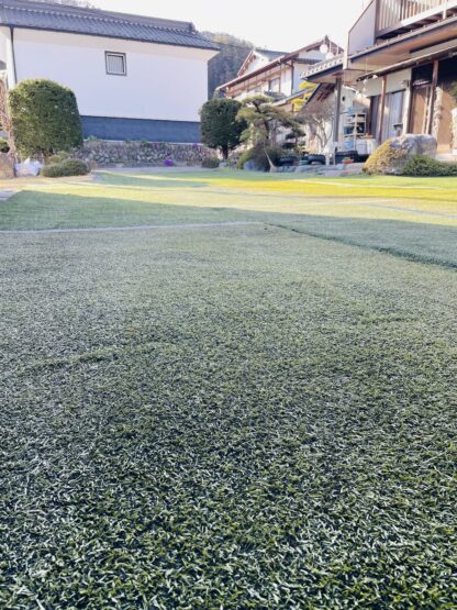 私は天然芝が好きで自宅に35㎡の高麗芝がありますが、先日サッカー場で使用していた、中古の人工芝が手に入ったので、実家の庭に施行してきました。