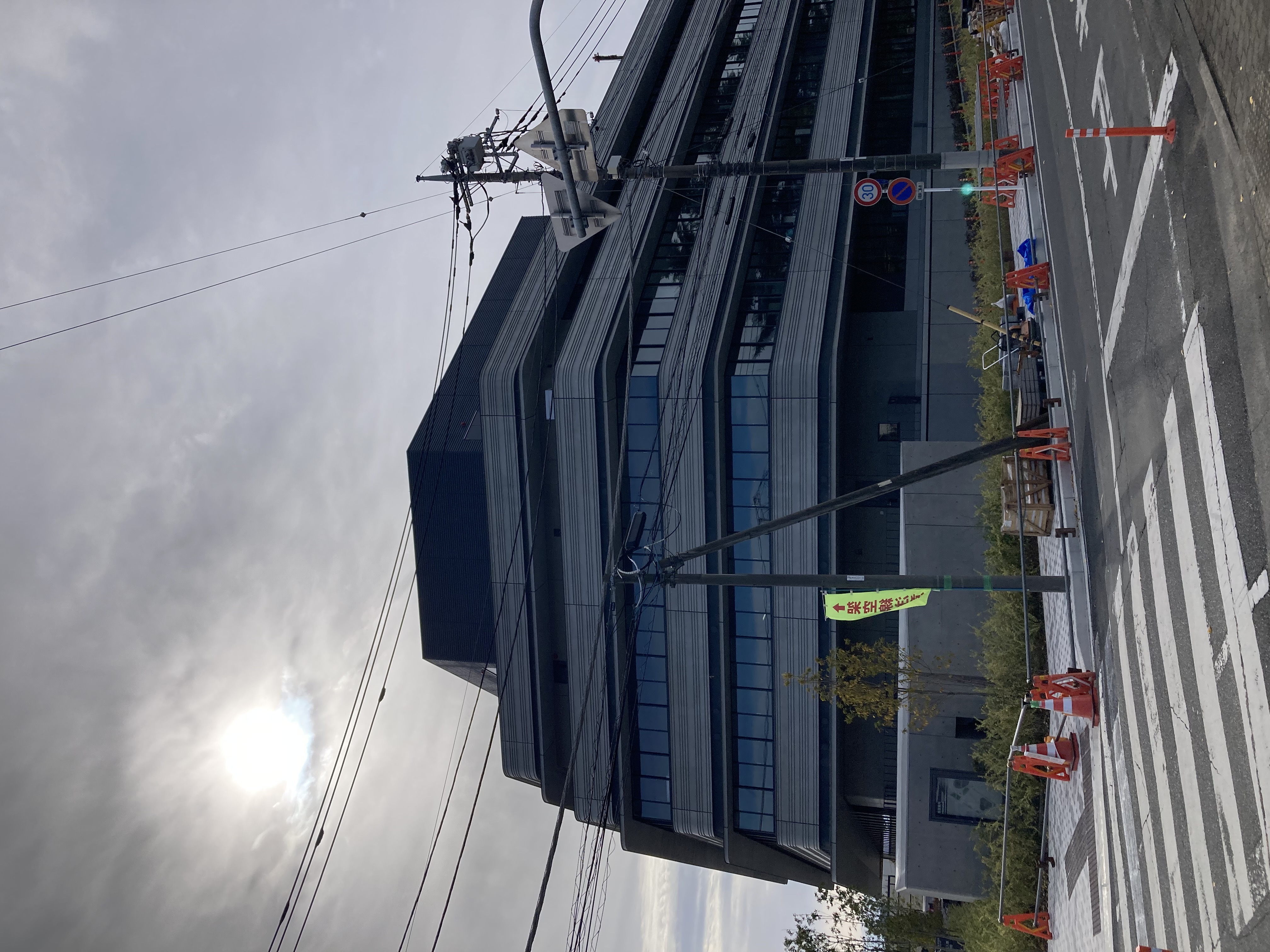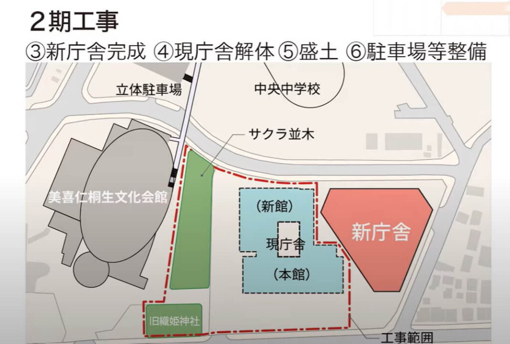 これは工事中も業務継続の旧庁舎を避けた敷地部分で計画したからです。